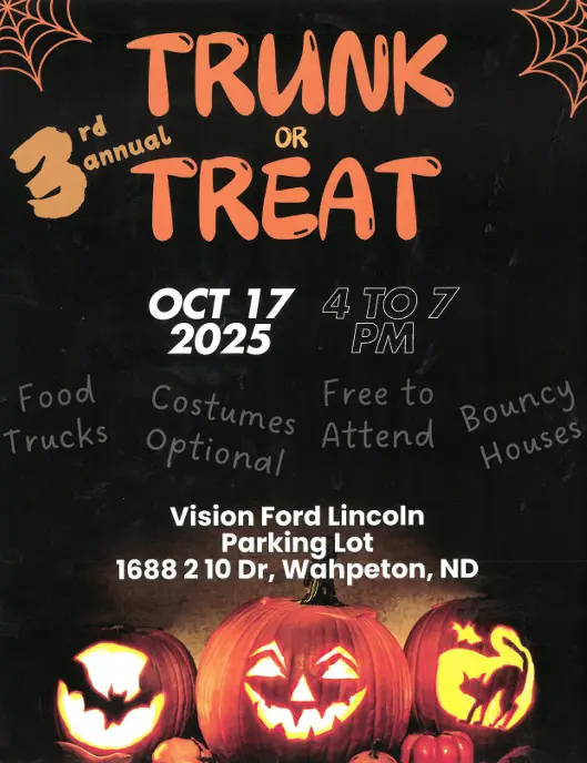 Fall clean-up week is scheduled for October 13-17, 2025, for City of Wahpeton residents. All items must be hauled to Waste Management at 1016 11th Ave. South. Limit to 4 yards per household. No appliances or